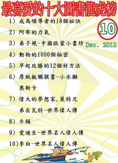 圖書館2012第四季度閱讀龍虎榜