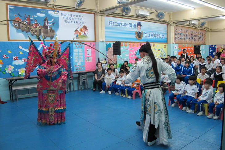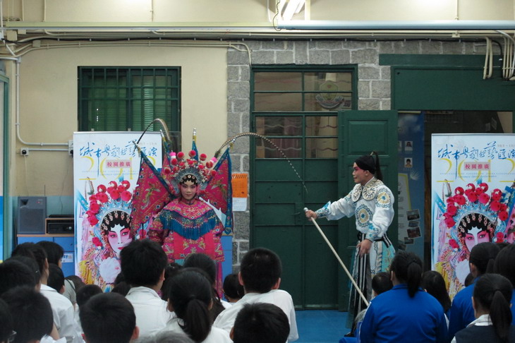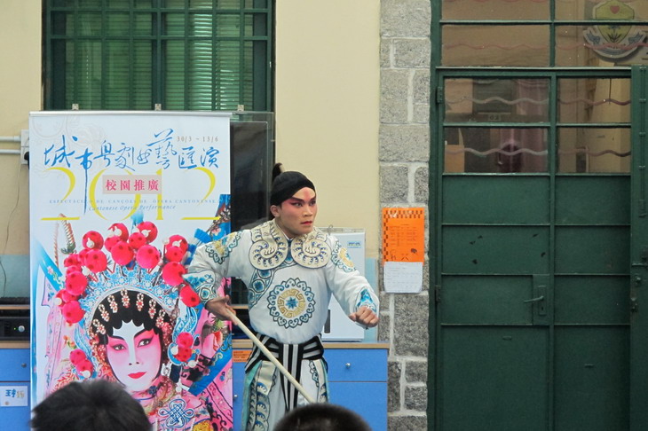 在四月十三日,民署聯同工聯文化委員會、澳門日報藝海版合辦的「城市粵劇曲藝匯演二零一二」學校推廣到我校作首場演出,有關團體邀請了廣東粵劇學校師生示範有趣的演繹方式,並煣合戲曲示範及導賞。匯演讓學生感受傳統的中華粵劇文化。當中還設有獎問答遊戲,即場邀請學生上台互動表演,反應熱烈投入,場面熱鬧。